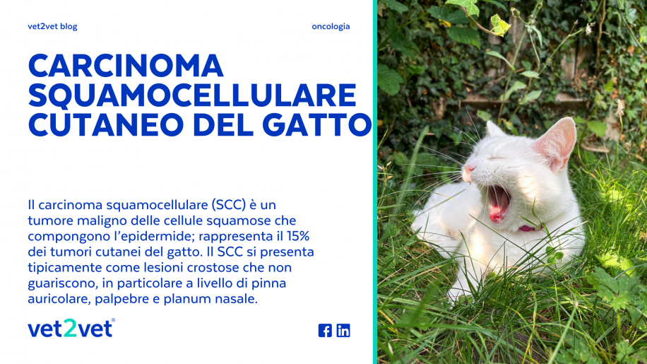 Che cos’è? Il carcinoma squamocellulare (SCC) è un tumore maligno delle cellule squamose (cheratinociti) che compongono l’epidermide; rappresenta il 15% dei tumori cutanei del gatto. Si […]